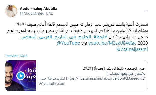 بداية الجدل حدث عندما غرد عبد الخالق عبد الله على تويتر قائلًا: "تصدرت أغنية بالبنط العريض لنجم الإمارات حسين الجسمي قائمة أغاني صيف 2020 بمشاهدات 55 مليون مشاهدة في أسبوعين متفوقًا على أغاني عمرو دياب وسعد لمجرد. نجاح خليجي وإماراتي وتأكيد لـ #لحظة_الخليج_في_التاريخ_العربي_المعاصر".