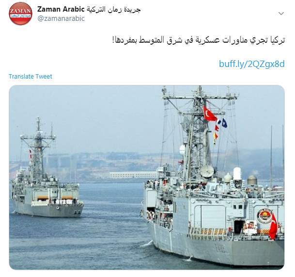 أكدت صحيفة "زمان" التركية أن تركيا أعلنت عن مناورات عسكرية مع قبرص "التركية"، تنطلق غدًا الأحد لمدة خمسة أيام، في شرق المتوسط بمفردها.