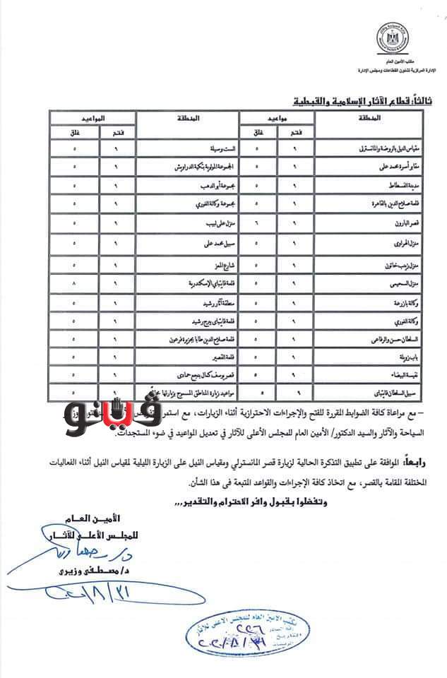 مواعيد استقبال الزائرين بكافة المتاحف والمواقع الآثرية | مستندات