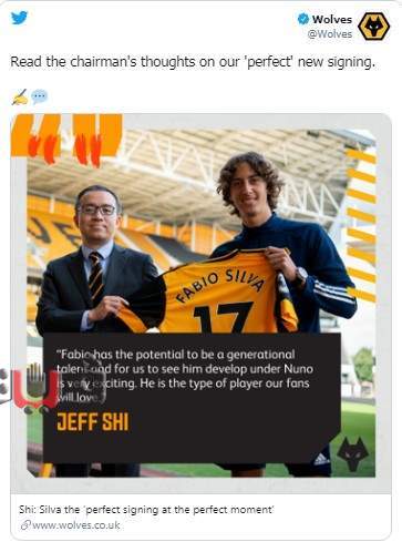 وقال جيف شي، رئيس وولفرهامبتون، إن سيلفا موهبة طبيعية ومستعد للعب مع فريق المدرب نونو إسبريتو سانتو.