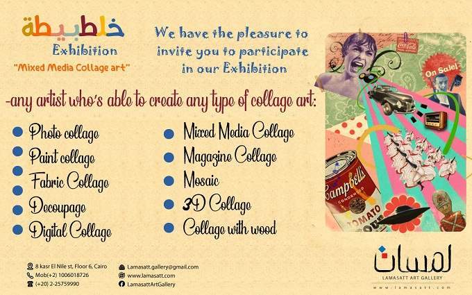 يقيم جاليري لمسات غدًا الإثنين في تمام الساعة السادسة مساءً معرض "خلطبيطة -ميكس ميديا" بمشاركة نخبة من أهم وأكبر الفنانيين التشكيليين في مصر والوطن العربي.