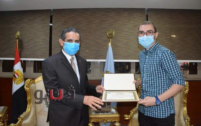 وفي نهاية المقابلة قام السيد المحافظ بتكريم الطالب محمد علي ووالدته، مؤكدا أن مكتبه مفتوح في أي وقت له ولغيره من الشباب المتميز الذي يكافح ويصر على تحقيق أحلامه.