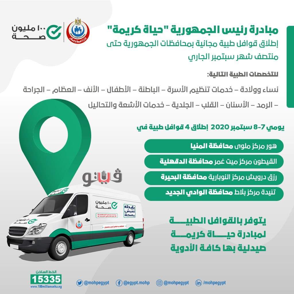 أماكن القوافل الطبية ضمن مبادرة حياة كريمة للكشف المجاني