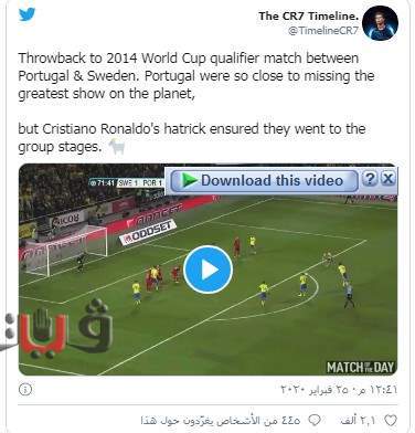 ويسعى رونالدو لتسجيل الهدف رقم 100 مع البرتغال أمام السويد، حيث سبق للهداف التاريخي لريال مدريد أن سجل 5 أهداف ضد السويد، منها 3 (هاتريك) في مباراة واحدة، وكانت في الملحق النهائي المؤهل إلى كأس العالم في نوفمبر 2013.