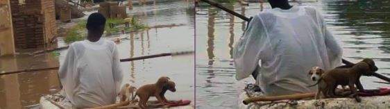 تداول عدد من رواد مواقع التواصل الإجتماعي المختلفة صورا أظهرت إنقاذ رجل سوداني لمجموعة من الكلاب الصغيرة من الغرق خلال الفيضانات التي تشهدها السودان.
