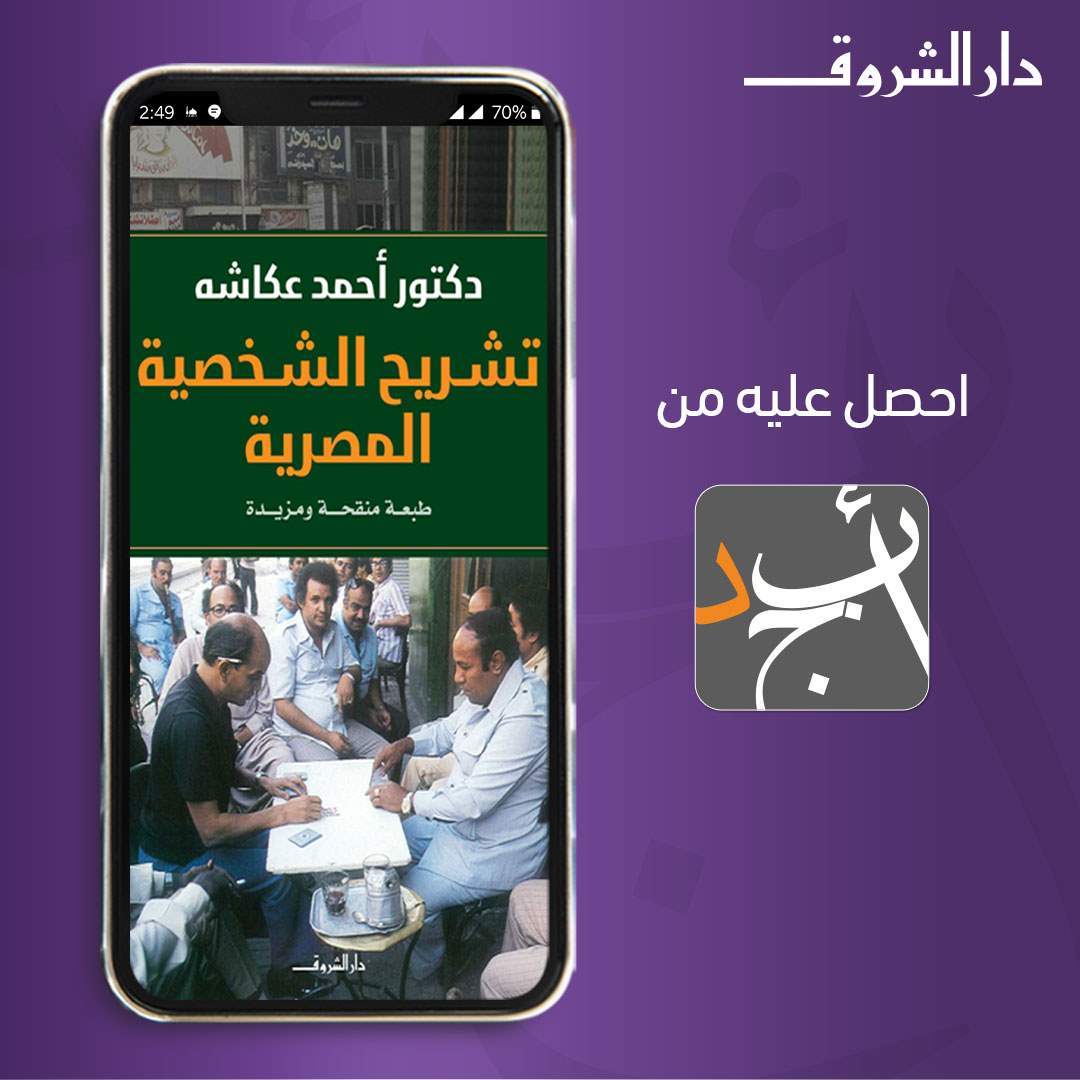أتاحت دار الشروق للنشر والتوزيع، كتاب "تشريح الشخصية المصرية" للدكتور أحمد عكاشة، للجمهور من أجل القراءة والاطلاع إلكترونيًا عبر تطبيق أبجد للكتب الإلكترونية.