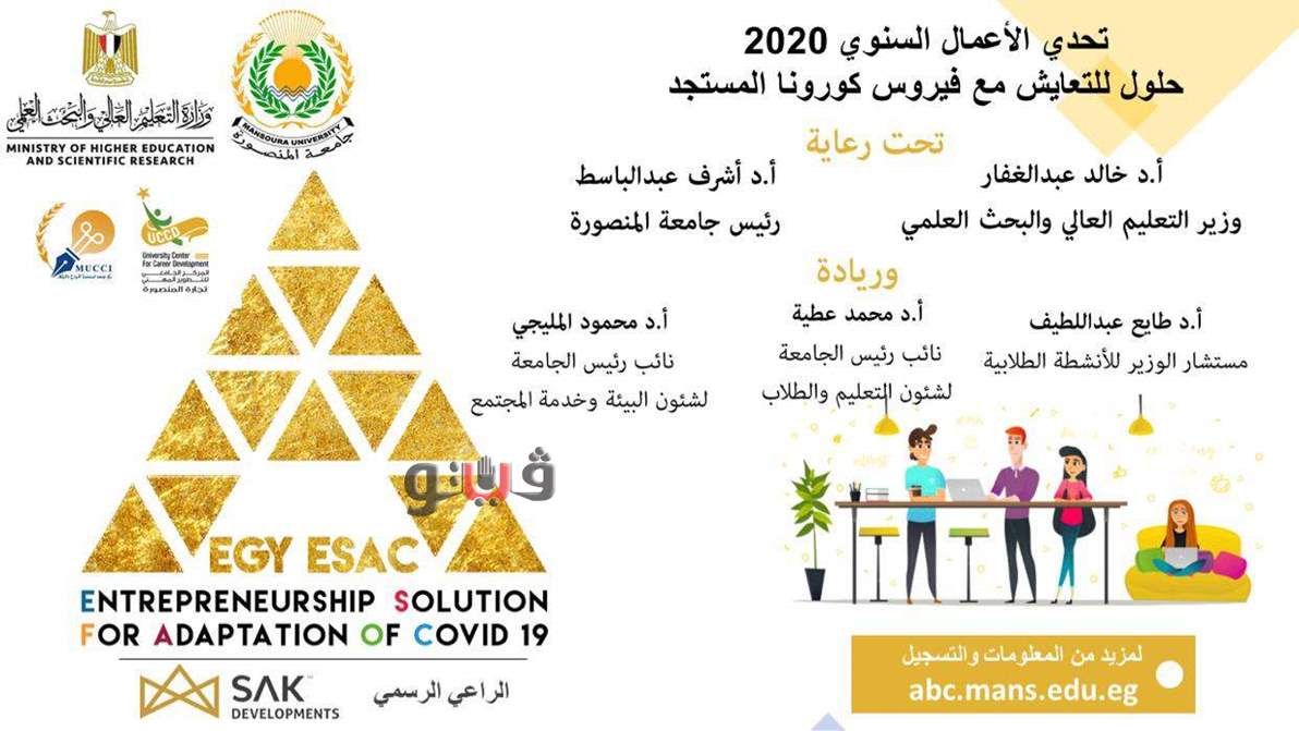 تنظم جامعة المنصورة تحدى الأعمال السنوي في نسخته الأولى للعام ٢٠٢٠ م تحت عنوان (حلول ريادة الأعمال للتعايش مع كورونا).