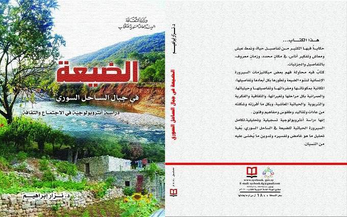 صدر حديثاً عن الهيئة العامة السورية للكتاب "الضيعة في جبال الساحل السوري ... دراسة أنثروبولوجية في الاجتماع والثقافة "، تأليف الدكتور نزار إبراهيم ، غلاف عبد العزيز محمد، ويقع الكتاب في 399 صفحة من القطع الكبير.