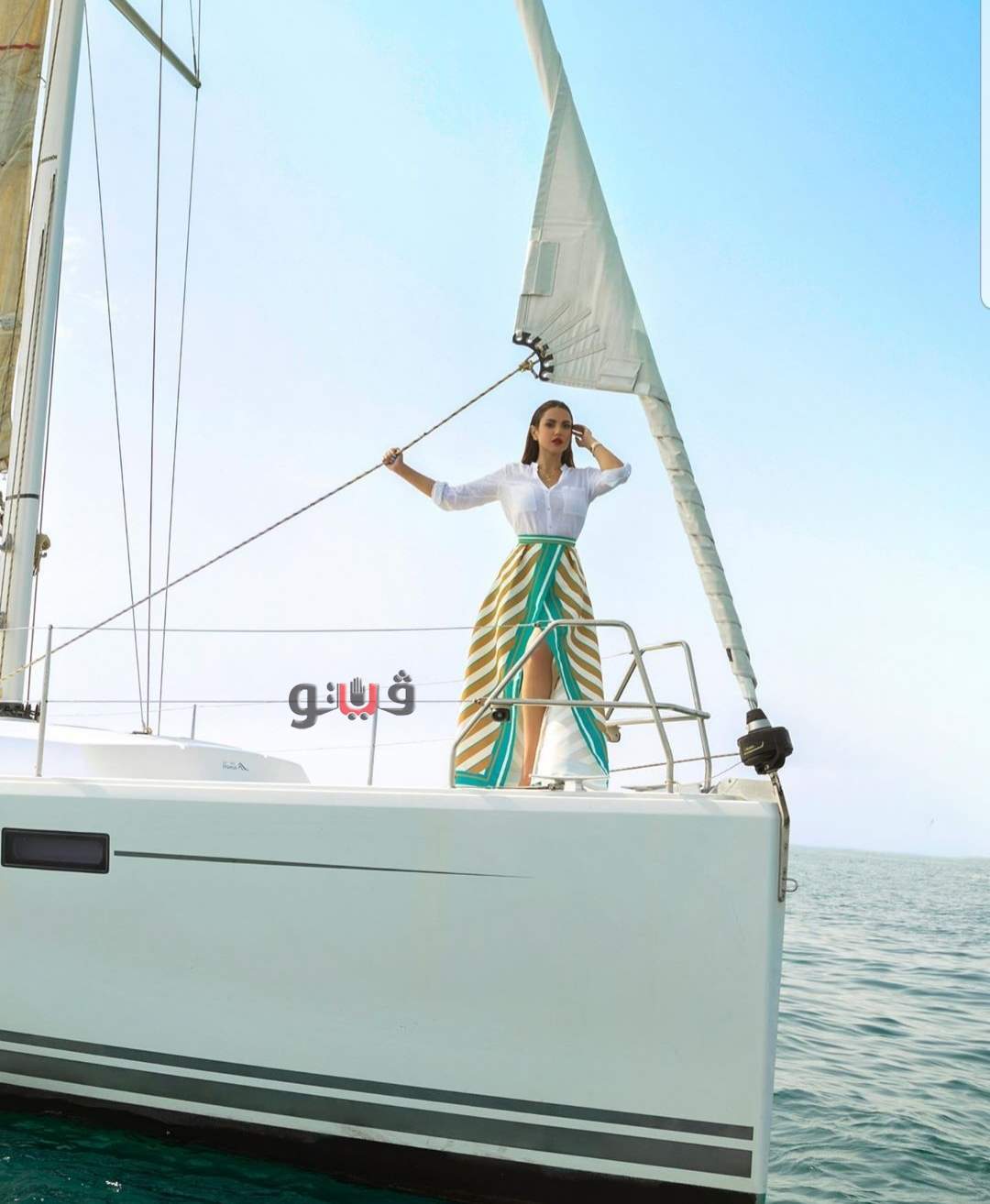 درة على يخت ضخم فى البحر فى أحدث جلسة تصوير