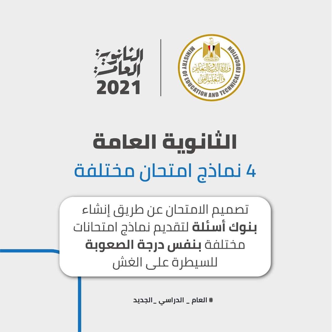ستحتوي امتحانات الثانوية العامة على طريقة أسئلة جديدة تعتمد على الفهم بدلاً من طرق الحفظ التقليدية، وسيتم إتاحة فرصة امتحان إضافية للطلاب لمن يرغب في تحسين نتيجته، على أن يحتسب المجموع الأعلى للطالب.