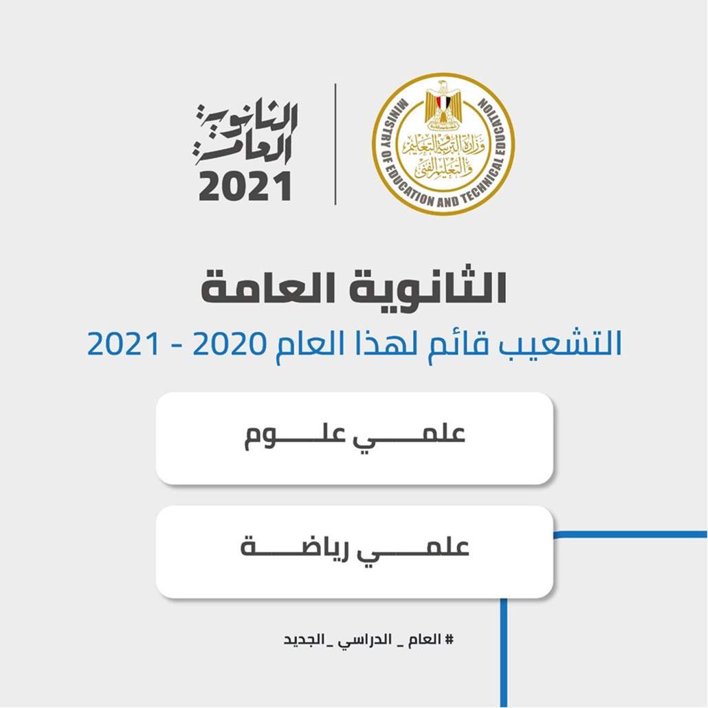 خطة العام الدراسي الجديد. لن الدكتور طارق شوقي، وزير التربية والتعليم والتعليم الفني، عن نظام الثانوية العامة للعام الدراسي ٢٠٢٠ - ٢٠٢١، والذي سيكون العام الأول الذي يتخلله العنصر الإلكتروني، وتصبح الامتحانات والتصحيح الكترونياً بالكامل، وذلك لضمان تكافؤ الفرص بين الطلاب، مع الإبقاء على نظام التشعيب لهذا العام علمي علوم وعلمي رياضة