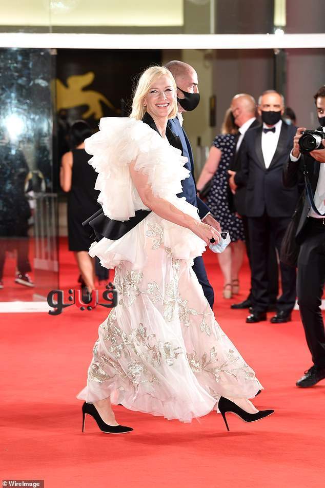 وكانت كيت بلانشيت قد اختارت إطلالة باللون الأسود أيضاً في حفل إفتتاح المهرجان، مع الحفاظ على ارتداء الكمامة للوقاية من الإصابة بفيروس كورونا.