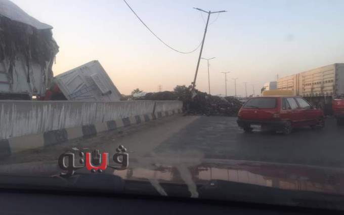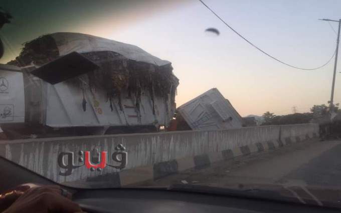 تكدس بسبب انقلاب سيارة نقل محملة قمامة على طريق "طنطا - المحلة" | صور