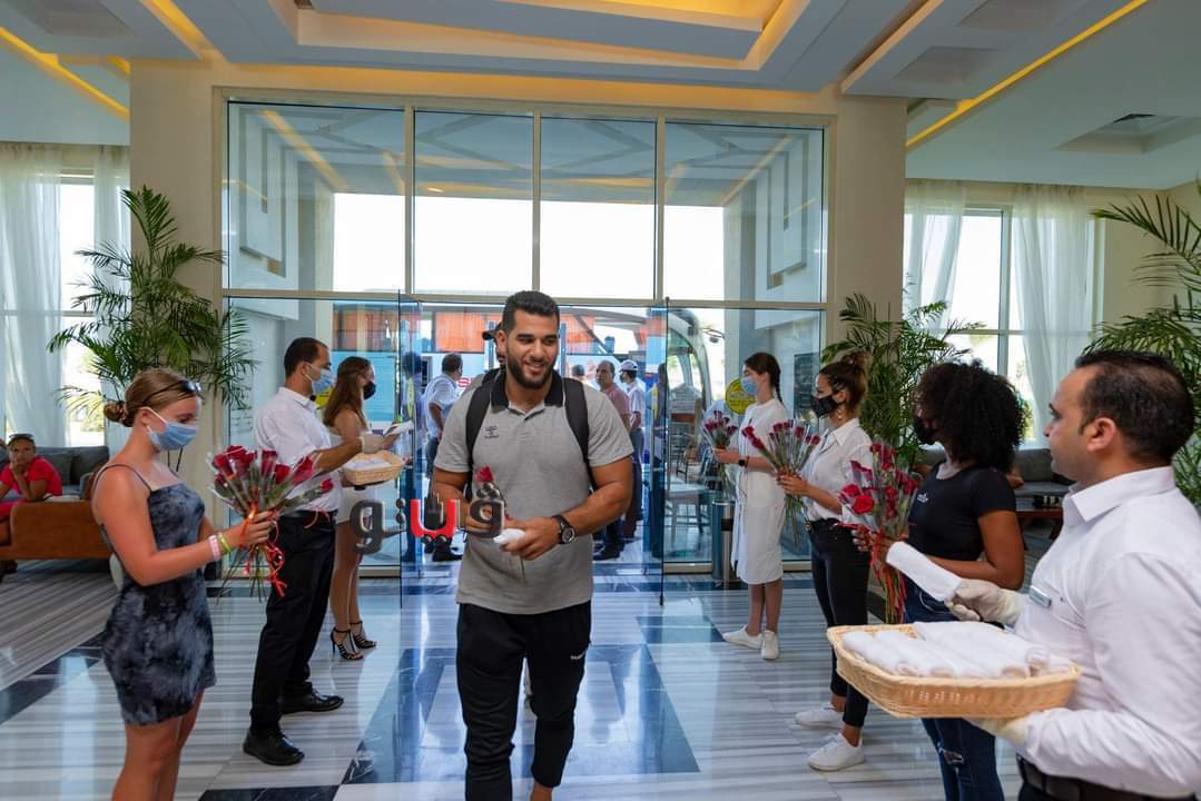 وحظى المنتخب باستقبال حافل من مسئولي فندق الباتروس أكوا فيستا فور الوصول حيث حرصت الإدارة على توفير أجواء احتفالية لرفع الروح المعنوية للاعبين قبل الدخول في فترة الاستعداد.
