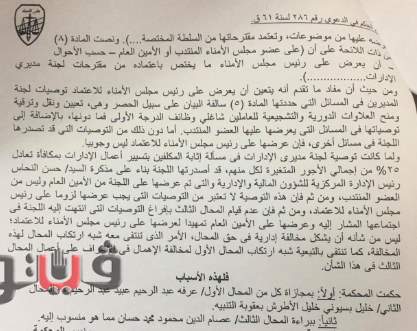 "وكيل وزارة" امتنع عن تنفيذ قرار رئيس مجلس الأمناء رقم 393 لسنة 2017