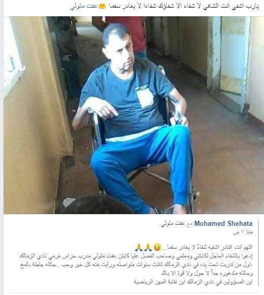 وكتب عبر صفحته على موقع التواصل الاجتماعي "فيس بوك": "اللهم أنت القادر.. اشفه شفاءً لا يغادر سقما، ادعوا بالشفاء العاجل للكابتن عفت متولي مدرب حراس مرمى نادي الزمالك.. جاتله جلطة بالمخ".