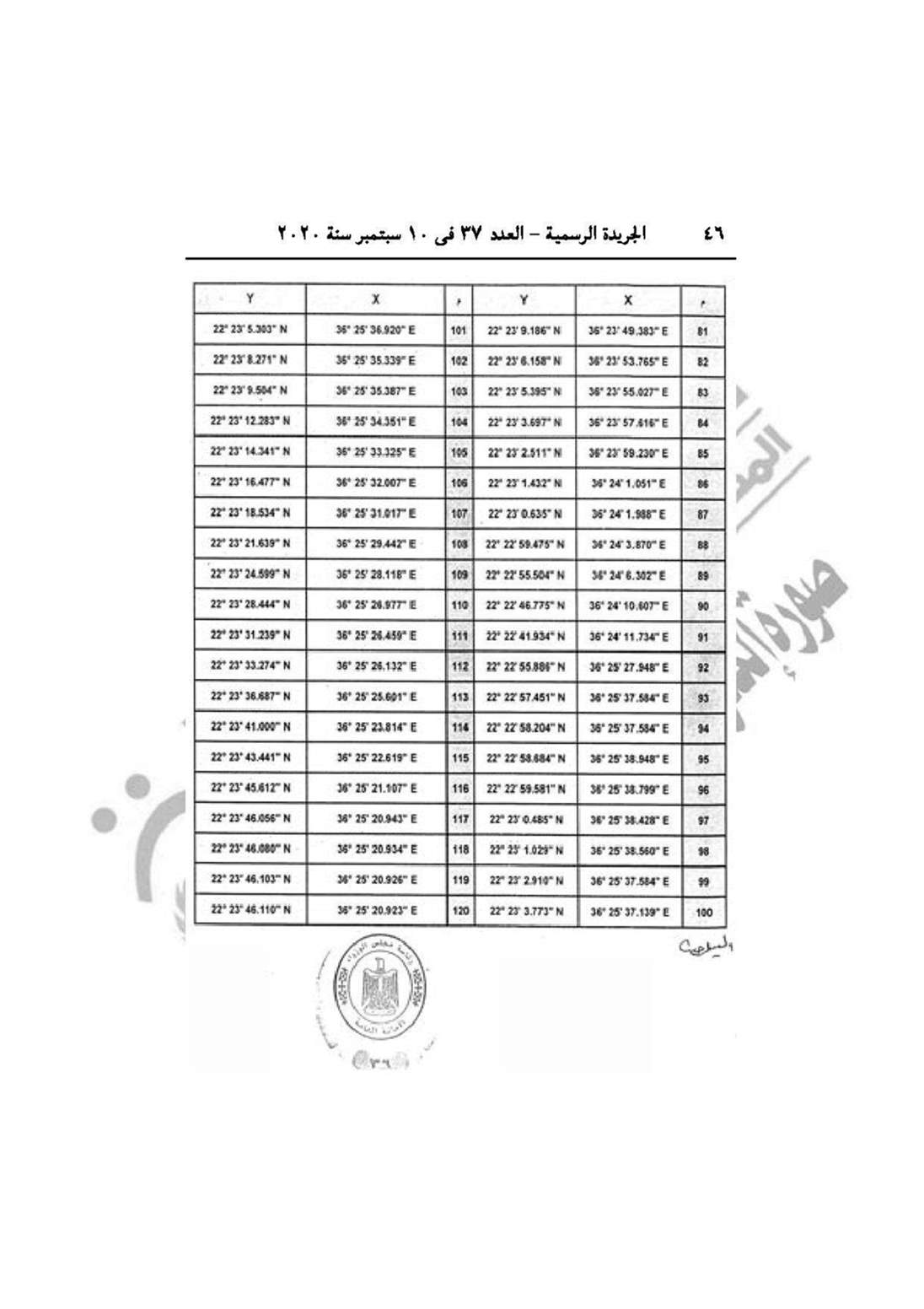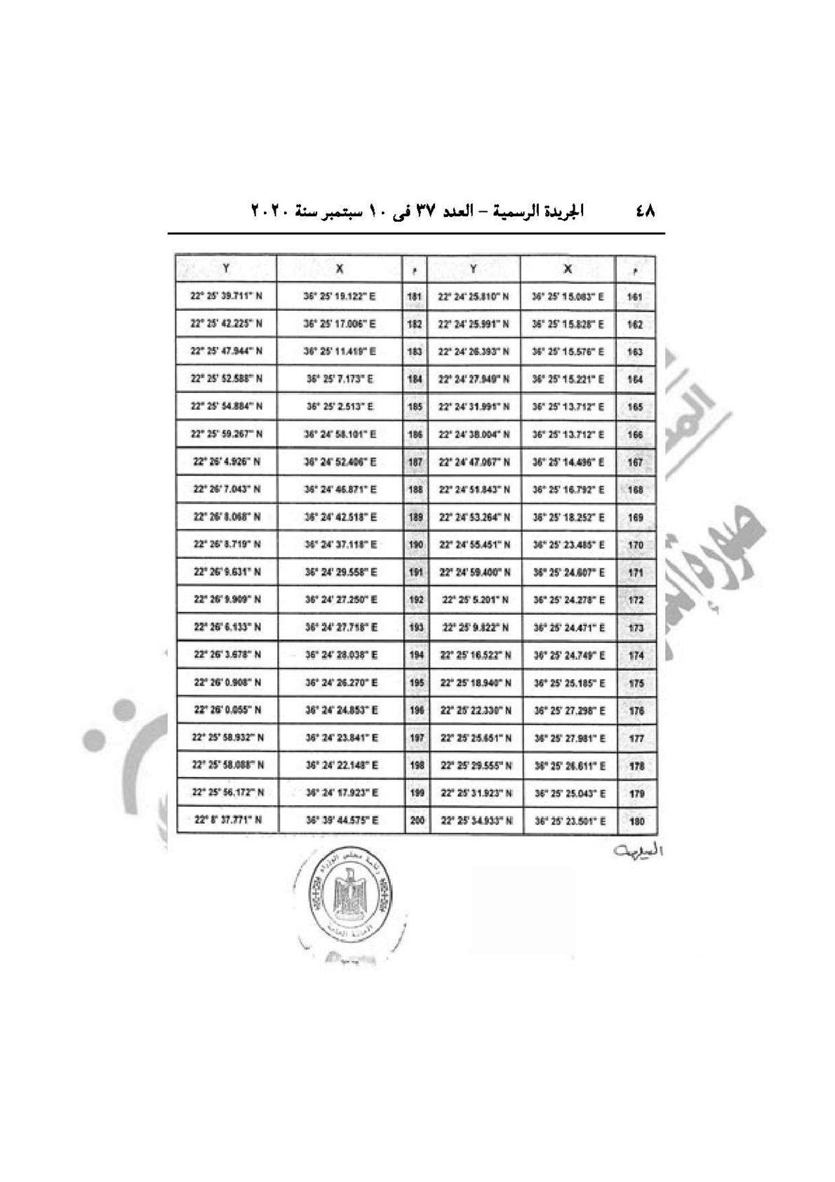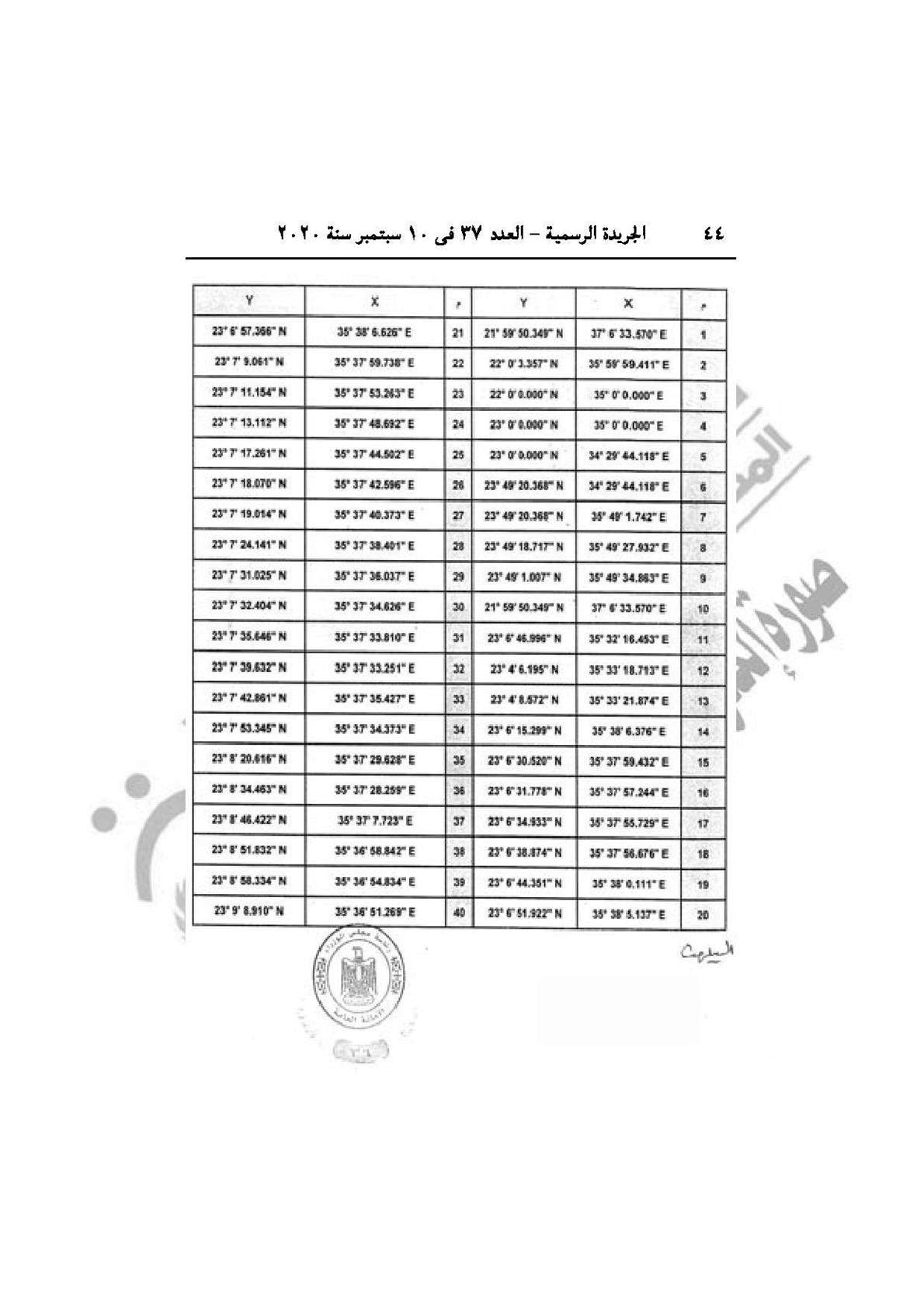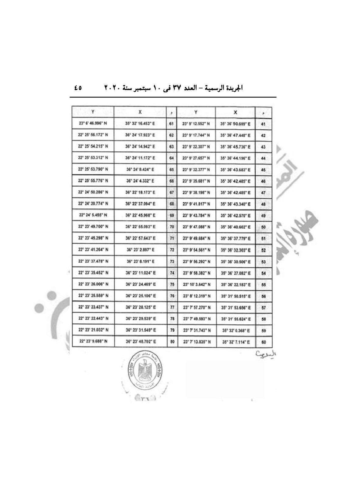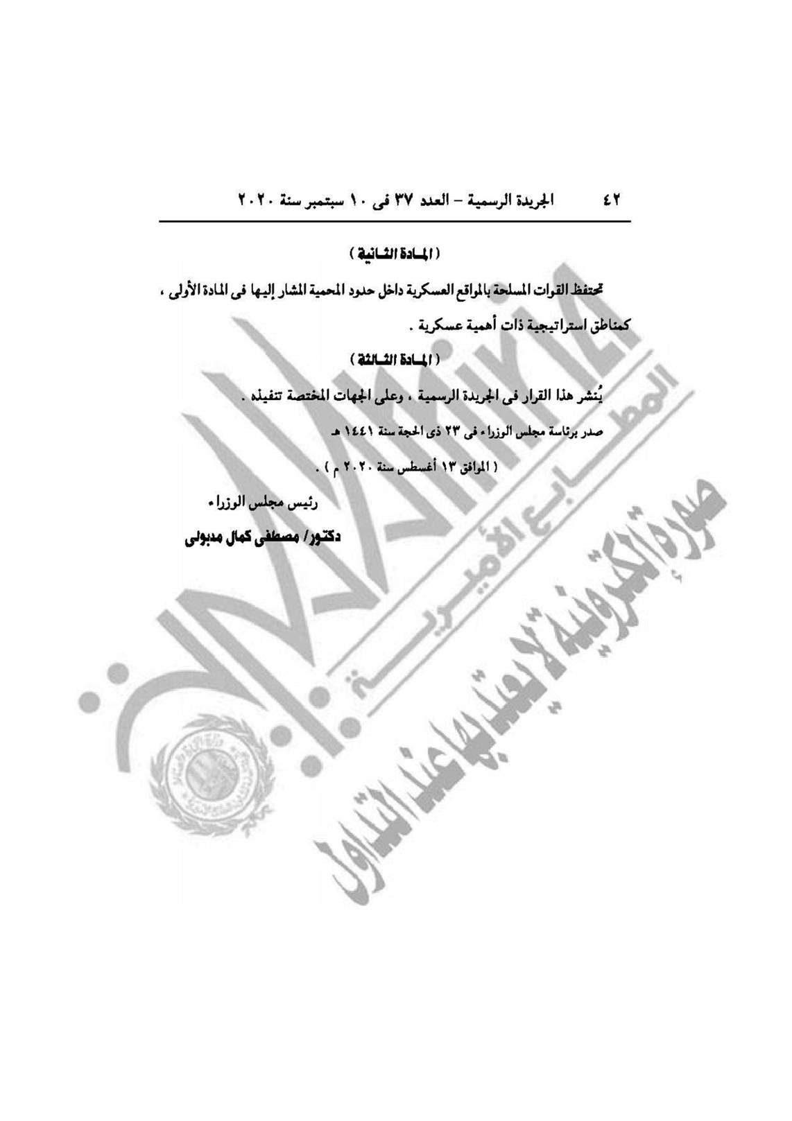 نشرت الجريدة الرسمية في عددها رقم 37، الصادر في 10 سبتمبر 2020، قراري رئيس مجلس الوزراء الدكتور مصطفى مدبولي، بشأن إنشاء محميات طبيعية في منطقة علبة بمحافظة البحر الأحمر، وإقامة ساحة انتظار سيارات النقل الجماعي بشارع ترعة المنصورية نهاية شارع فيصل بالجيزة.
