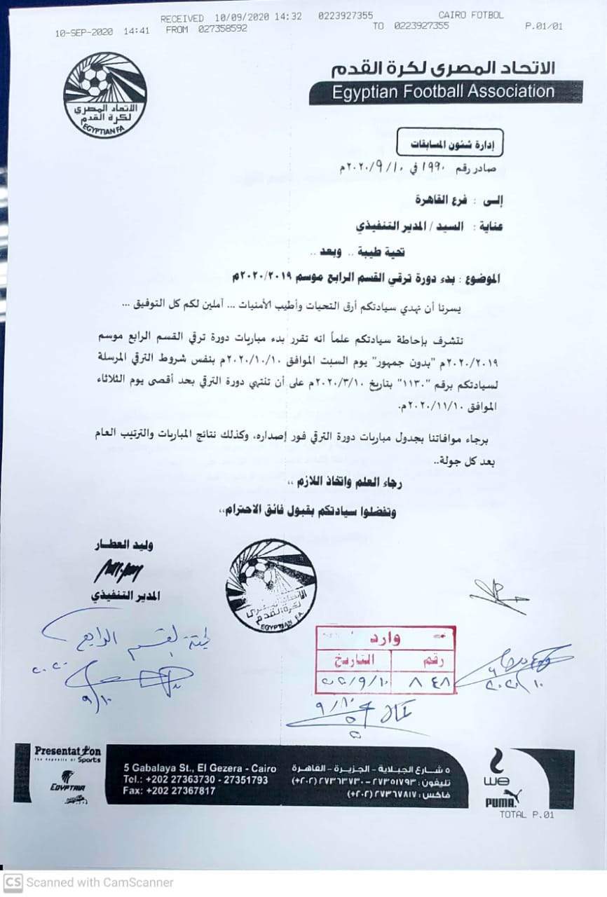 وحدد إتحاد الكرة الموعد الأقصي لنهاية دورة الترقي بتاريخ 10 نوفمبر 2020 المقبل وطالب الجبلاية في خطابة بموافاته بجدول اللقاءات فور الإنتهاء منه وكذلك نتائج المباريات والترتيب العام بعد كل جولة.