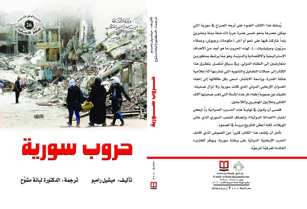 صدر حديثاً عن الهيئة العامة السورية للكتاب ،" حروب سورية " تأليف الكاتب والسفير الفرنسي بسوريا، ميشيل رامبو ، وترجمة وتقديم الدكتورة لبانة مشوّح، وزيرة الثقافة السورية ،وصمم الغلاف عبد العزيز محمد، ويأتي ذلك ضمن "المشروع الوطني للترجمة بسوريا.