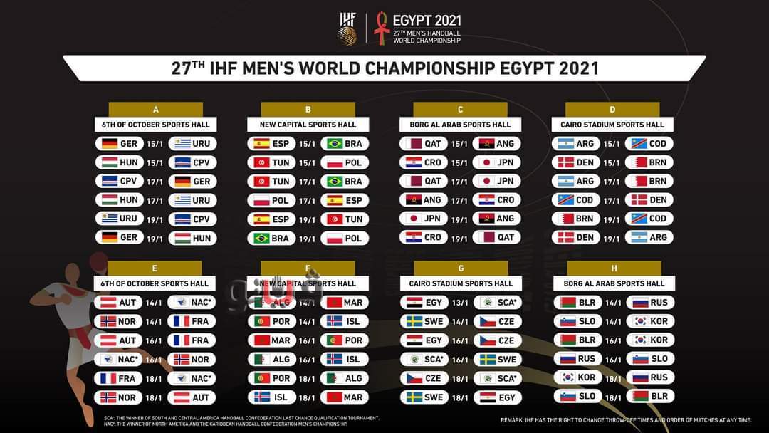 جدول مباريات منتخب اليد في مونديال 2021