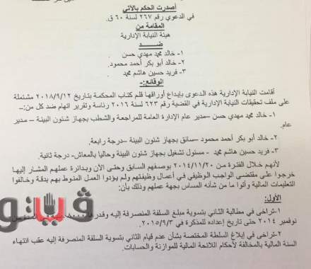 الدولة حكمها في القضية رقم 267 لسنة 60 قضائية عليا ببراءة مدير عام بجهاز شئون