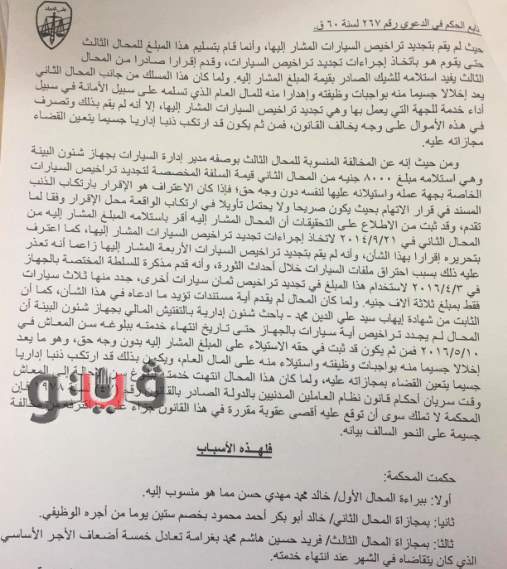 براءة مدير عام بـ"جهاز شئون البيئة" ومعاقبة أحد مساعديه وسائق