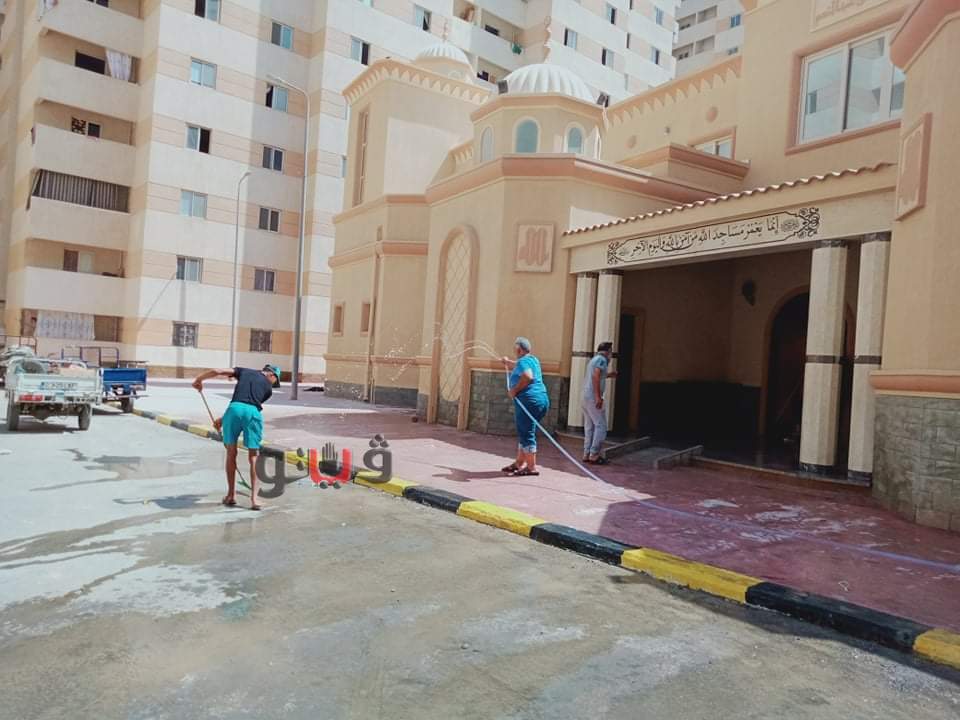 حيث شهدت مساجد مدينة بشاير الخير 3 حملة تطهير وتعقيم للمساجد ومحيطها والتي مقرر افتتاحها اليوم، بحضور اللواء محمد الشريف محافظ الإسكندرية، والشيخ محمد خشبة وكيل وزارة الأوقاف.