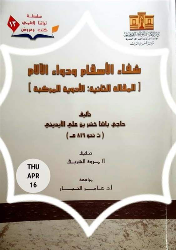 يقدم المجلس الأعلى للثقافة، في الثامنة والنصف مساءً الثلاثاء المقبل الموافق 15 سبتمبر الجاري، مناقشة وقراءة من الموسوعة العلمية "شفاء الأسقام ودواء الآلام"، تأليف حاجي باشا خضر بن علي الأيديني، المتوفى نحو 816 هجريًا، ومن تحقيق مروة الشريف الباحثة بمركز تحقيق التراث بدار الكتب والوثائق، ومراجعة الدكتور عامر النجار، ويأتي ذلك عبر قناة أمانة المؤتمرات بالمجلس على موقع الفيديوهات الشهير "يوتيوب".