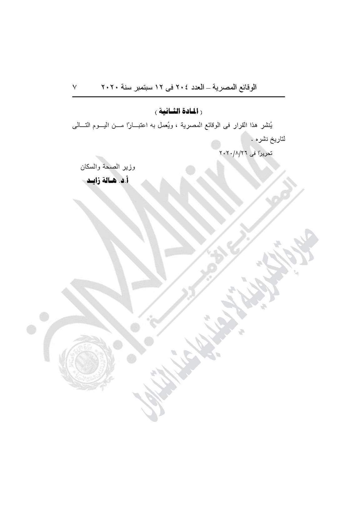 نشرت جريدة الوقائع المصرية في عددها رقم 204، الصادر في 12 سبتمبر 2020، قرار وزارة الصحة والسكان رقم 567 لسنة 2020، بشأن تعديل بعض أحكام القرار رقم 351 لسنة 2012.