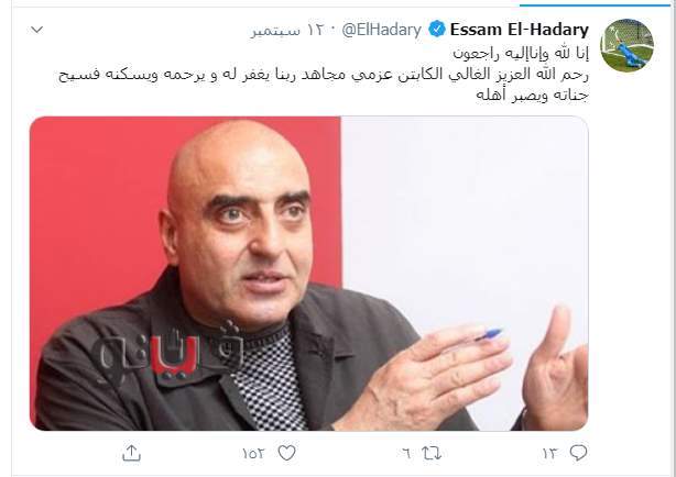 الكابتن عزمي مجاهد ربنا يغفر له ويرحمه ويسكنه فسيح جناته ويصبر أهله".