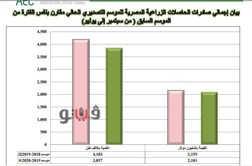 وجاءت نسبة التراجع قدره 2.5% ، وذلك طبقا للتقرير الصادر من المجلس التصديري للحاصلات الزراعية