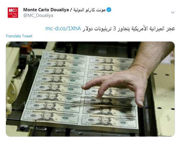 نقلت إذاعة مونت كارلو الدولية، عبر حسابها الرسمي بتويتر، تقرير وزارة الخزانة الأمريكية الذي أكد أن جائحة فيروس كورونا دفعت عجز ميزانية حكومة الولايات المتحدة إلى ما يزيد عن ثلاثة تريليونات دولار في أول 11 شهرًا من السنة المالية 2020، وهو ما يزيد على ضعفي الرقم القياسي السابق لعام بأكمله، حيث تنتهي السنة المالية في 30 سبتمبر.