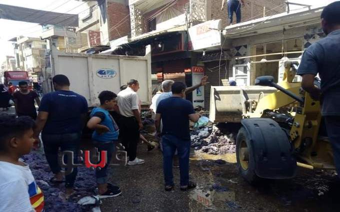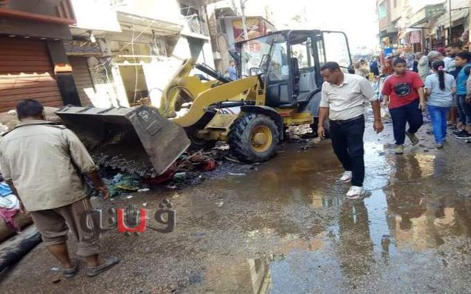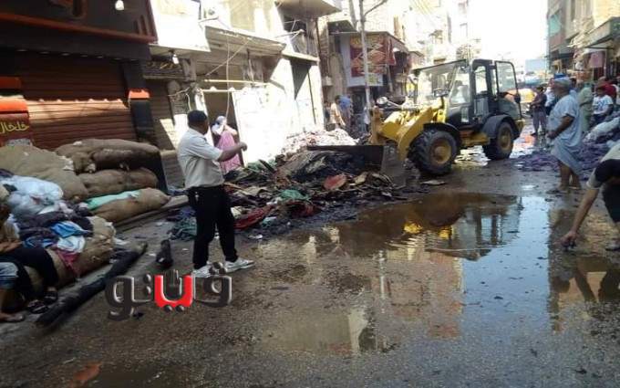 رفع المخلفات الناتجة عن حريق محل أقطان بالسنطة | صور