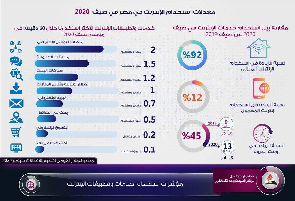 معدلات استخدام الإنترنت بمصر في صيف 2020 | إنفوجراف