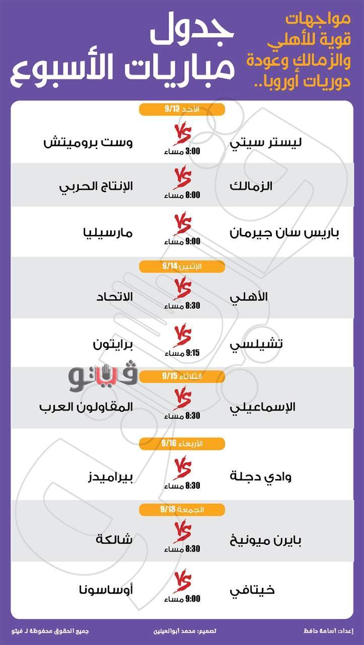 مواجهات قوية للأهلي والزمالك وعودة دوريات أوروبا.. جدول مباريات الأسبوع الأحد 13/سبتمبر/2020 - 02:09 ص 9/13/2020 2:09:22 AM مواجهات قوية للأهلي والزمالك وعودة دوريات أوروبا.. جدول مبا شارك طباعة 18 حجم الخط شارك طباعة الزمالك الأهلي الدوري العام