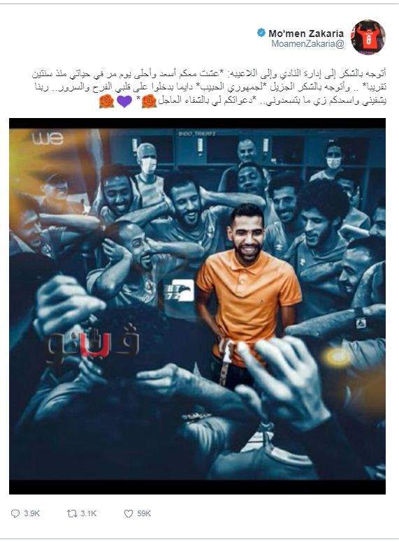 أعرب مؤمن زكريا، نجم الأهلي السابق، والذي