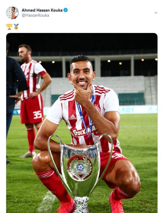 ونشر أحمد حسن كوكا صورة له أمام كأس اليونان، الذي حصل عليه فريقه أولمبياكوس اليوناني، وغاب كوكا عن المشاركة في المباراة النهائية، وسجل لازار رانديلوفيتش هدف المباراة الوحيد، وحقق أولمبياكوس الثنائية المحلية بعد تتويجه الأخير بلقب الدوري اليوناني لنفس الموسم ليصبح كوكا أول مصري يحقق الثنائية اليونانية.