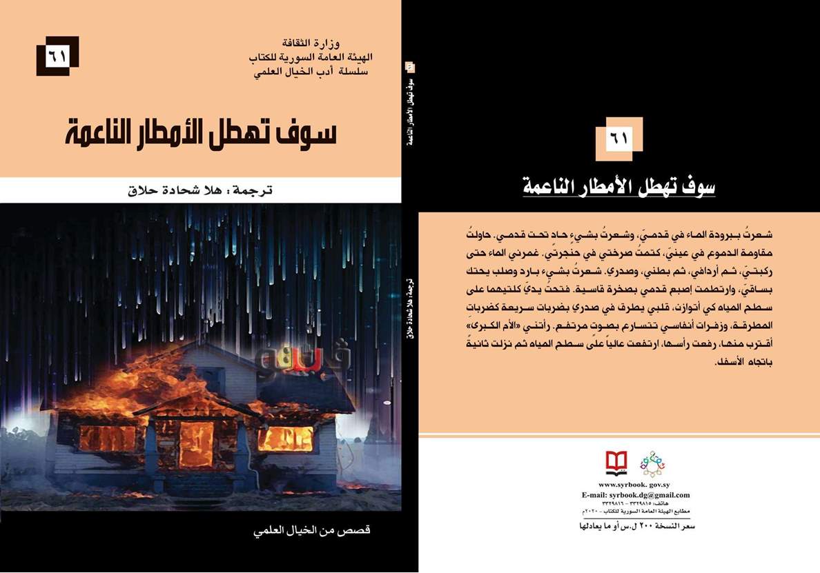 صدر حديثًا عن الهيئة العامة السورية للكتاب، وضمن سلسلة "أدب الخيال العلمي" مجموعة قصصية حديثة معنونة بـ"سوف تهطل الأمطار الناعمة"، بترجمة وتقديم هلا شحادة حلاق.