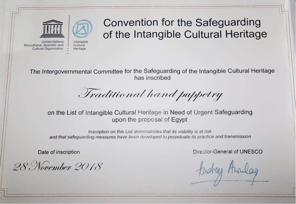 قالت وزيرة الثقافة أن تسجيل ملف النخلة بالقائمة التمثيلية للتراث الإنساني بمنظمة اليونسكو جاء بالمشاركة بين مصر ومجموعة من الدول العربية هى البحرين ، الإمارات ، السعودية ، الكويت ، سلطنة عمان ، العراق ، اليمن ، فلسطين ، الأردن ، السودان ، تونس ، المغرب وموريتانيا وذلك بعد ان عقد مندوبو الأليكسو ( المنظمة العربية للتربية والثقافة والعلوم ) ملتقى موسع بمدينة الاقصر لبحث ترشيح الملف إلى جانب عدة اجتماعات بالخرطوم وتونس وأبوظبي اكتملت خلالها الاجراءات وقامت الإمارات بالتنسيق لتقديم الملف ممثلة عن الدول العربية ، وأكدت استمرار مساعى صون الموروثات الحضارية التى تميز المجتمع العربى ، مشيره إلى الفخر بتسجيل عنصرين تاريخيين ينتميان إلى التراث غير المادى المصرى في قائمة الصون العاجل بمنظمة اليونسكو هما لعبة التحطيب ودمية الاراجوز .