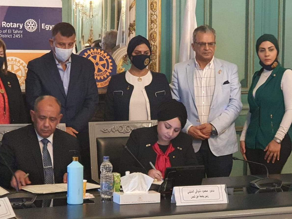 ووقع البروتوكول الدكتور أحمد جلال الدين عميد كلية الزراعة بجامعة عين شمس والدكتورة دينا المنزلاوي رئيسة لجنة البيئة بنادي روتاري التحرير، وبمشاركة الدكتور محمود شوقي رئيس جامعة عين شمس، ورئيس نادي روتاري التحرير هالة علاوي وعدد من أعضاء النادي و الدكتور إبراهيم الزيات عضو مجلس الإدارة لنقابة الأطباء نائبا عن نقيب الأطباء.