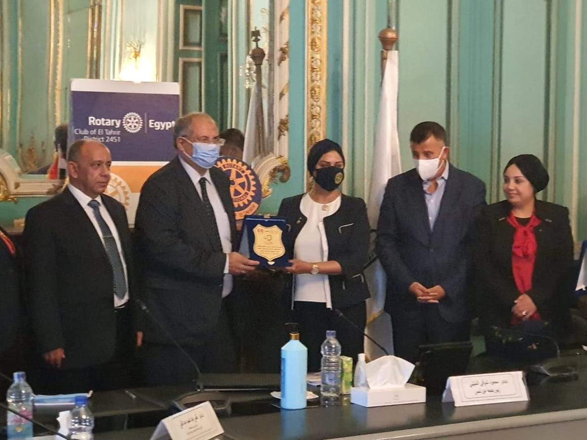كما أهدى نادي روتاري التحرير درع التميز في الخدمة المجتمعية لكل من رئيس الجامعة وعميد الكلية وذلك شكرا وتقديرا لهم على التعاون مع مؤسسات المجتمع المدني وتذليل الصعوبات من أجل خدمة وطننا العزيز كما أهدت الجامعة درع شكر وتقدير لنادي روتاري التحرير وذلك تقديرا لجهودهم المخلصة في خدمة المجتمع.