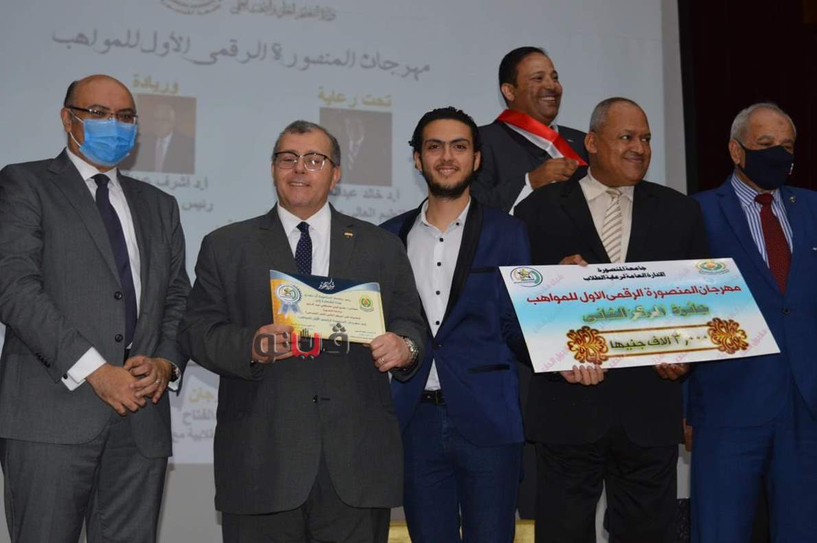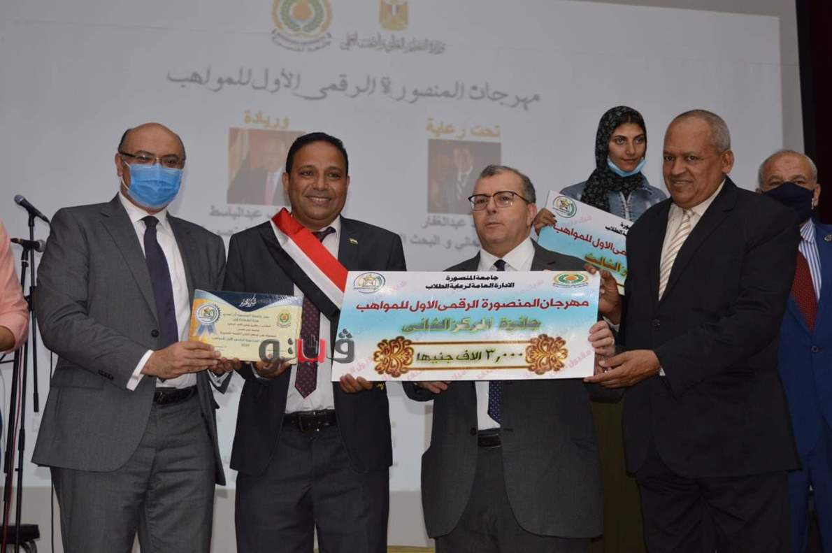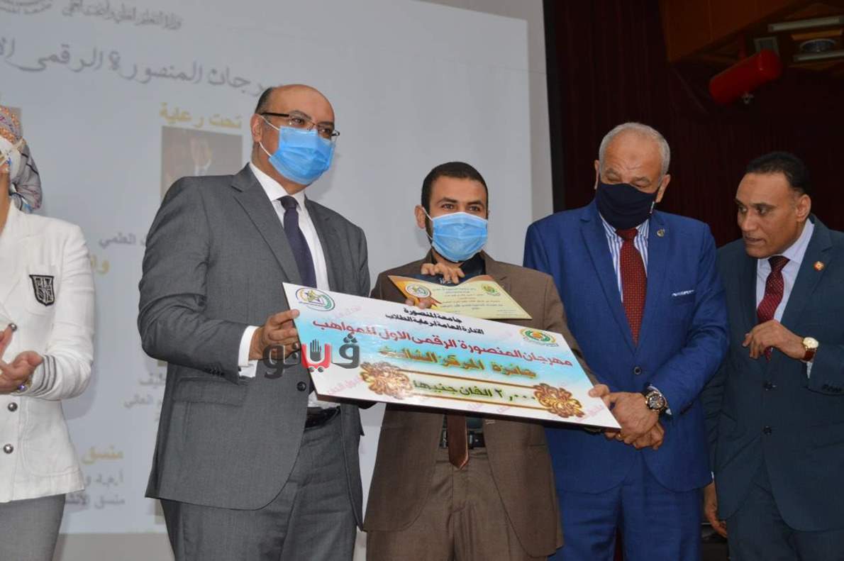 أعلنت جامعة المنصورة اليوم الثلاثاء الموافق ١٥ سبتمر٢٠٢٠ م أسماء الفائزين بجوائز مهرجان المنصورة الرقمي الأول للمواهب والذى نظمته الجامعة تحت رعاية الدكتور خالد عبد الغفار وزير التعليم العالي.