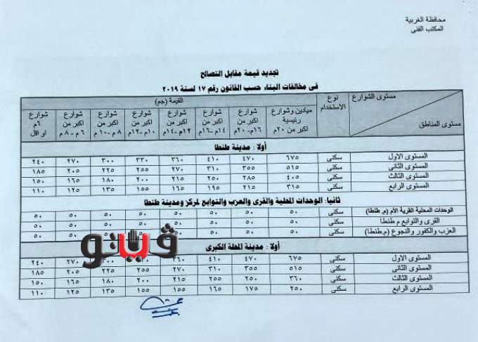 يذكر أن محافظ الغربية قد قام بتعديل أسعار التصالح في مطلع الشهر الجاري بنسبة وصلت إلى 40 % لتصبح محافظة الغربية وقتها واحدة من أعلى 7 محافظات قامت بالتخفيض.