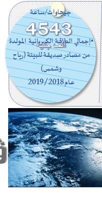 بلغ إجمالي الطاقـة الكهربائية المولدة من مصادر صديقة للبيئة (رياح وشمس) 4543 جيجاوات/ ساعة عـام 2018/2019 مقابل 2871 جيجاوات/ساعة عام 2017/2018 بنسبة زيادة قدرها 58.2٪ تقريبا، يأتي ذلك طبقا لأحدث التقارير الصادرة عن الجهاز المركزى للتعبئة العامة والإحصاء.