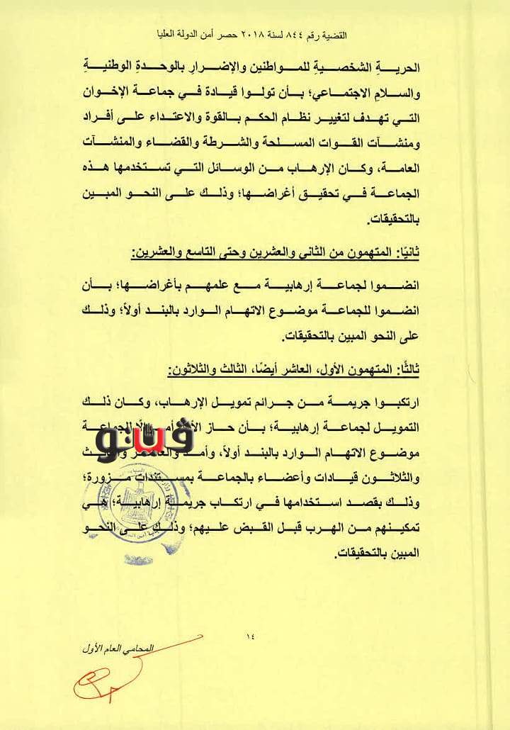 «الإخوان»، وتمويل أنشطته المحظورة التى تنطوى على التحريض على ممارسة العنف فى هذه القضية المقيدة برقم 844 لسنة 2018 حصر أمن دولة عليا.