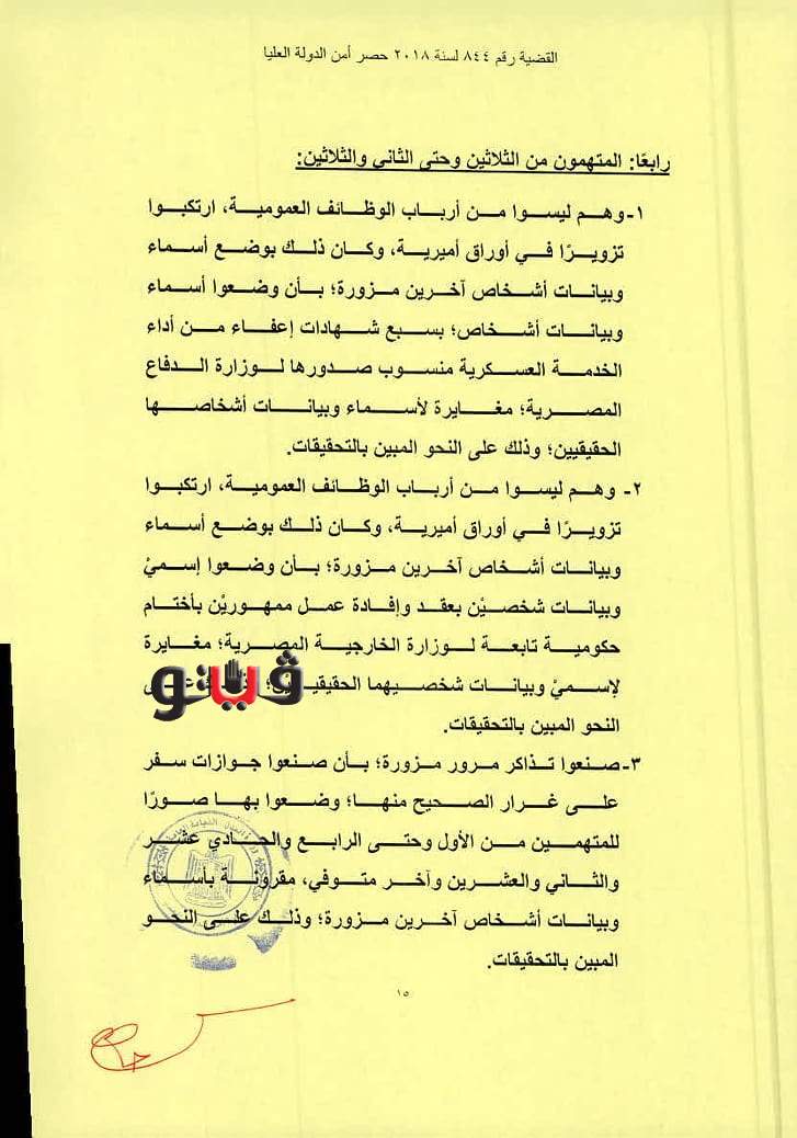 وأن المتهمين من الفترة 2015 حتى 3 /11/ 2019 من الأول حتى الحادى والعشرين