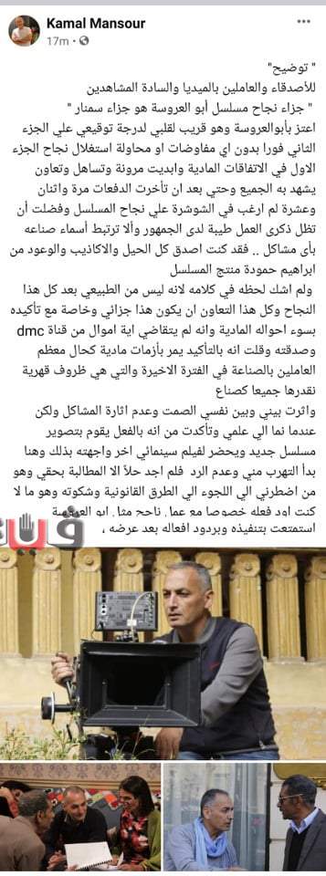 خرج المخرج كمال منصور مخرج مسلسل "أبو العروسة" عن صمته وتحدث عن أزمة بينه وبين المنتج إبراهيم حمودة.