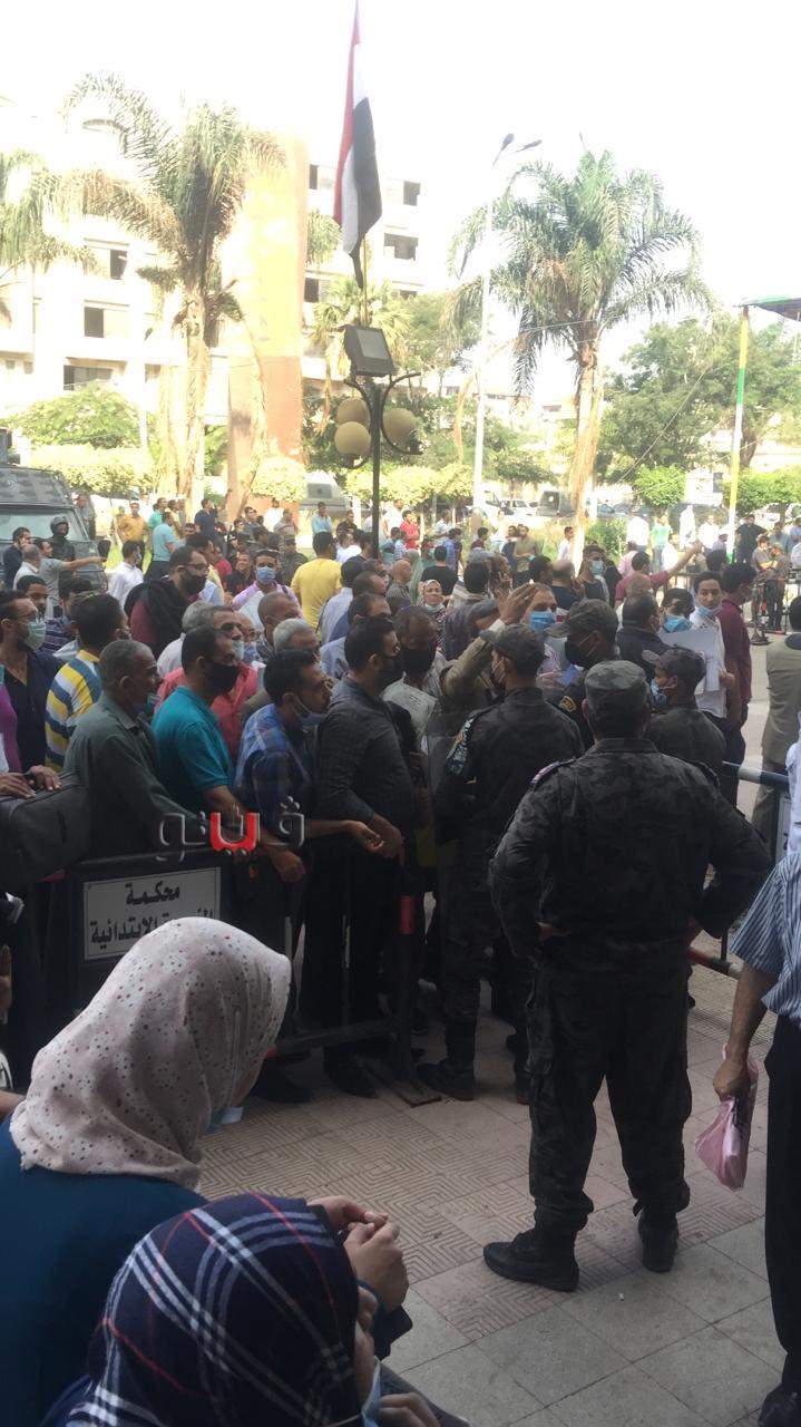 ومع التزاحم انتشرت قوات الأمن وسيارات الأمن المركزي لتطويق مجمع المحاكم لمحاولة فرض السيطرة.