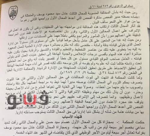 وأكدت المحكمة عبر أسباب حكمها أن المخالفين الثلاثة خرجوا على مقتضى الواجب الوظيفي ولم يؤدوا عملهم بدقة وخالفوا القواعد المالية المعمول بها والمنصوص بها في القوانين واللوائح