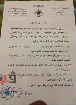 انتشرت على مواقع التواصل الاجتماعي وثيقة تشير إلى منع المملكة العربية السعودية إلزام السيدات بارتداء الحجاب بدءا من سبتمبر الجاري.